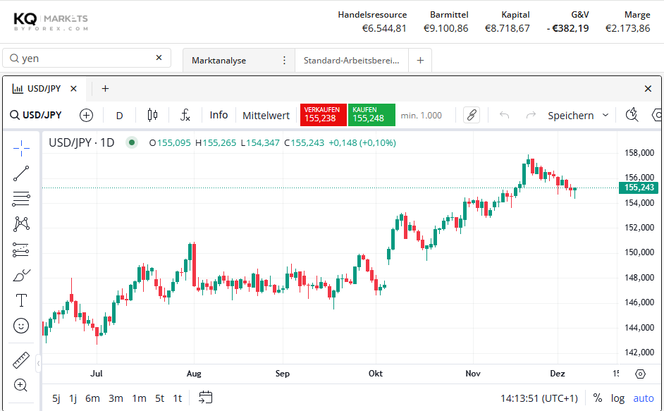 Allerdings dämpften unerwartet schwache Konsumdaten die Spekulationen über eine schnelle Zinserhöhung im Dezember. Die Ausgaben der japanischen Privathaushalte sanken im Oktober überraschend um drei Prozent im Vergleich zum Vorjahresmonat, während Volkswirte mit einem Anstieg gerechnet hatten. Auch gegenüber dem Vormonat gingen die Ausgaben stark zurück. Diese Daten sind ein wichtiger Indikator für die BoJ, die nun abwägen muss, ob sie die Zinsen noch in diesem Jahr anhebt oder bis zum kommenden Jahr wartet.