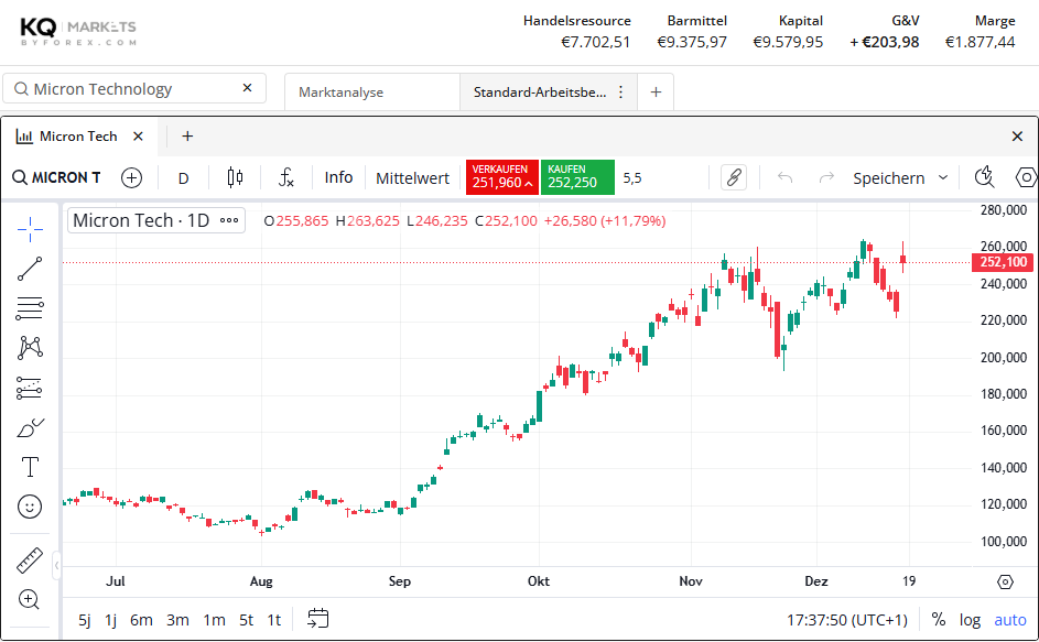 Die Aktie von Micron Technology reagierte am 17. Dezember mit einem deutlichen Kurssprung von rund 10 Prozent auf die Veröffentlichung der Ergebnisse für das erste Quartal des Fiskaljahres 2025/26. Die vorgelegten Zahlen verdeutlichen nicht nur die starke Marktposition des US-Speicherchipspezialisten, sondern auch das enorme Ausmaß, in dem das Unternehmen vom anhaltenden Boom im Bereich der Künstlichen Intelligenz (KI) profitiert.
